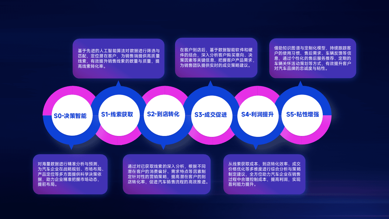 通过拓宽潜在客户来源、、优化线索分配并提高到店转化率,,,,以增强销售效率。。。。同时,,利用线索数据不断优化分析模型,,,有效提升转化率,,扩大营销影响力。。